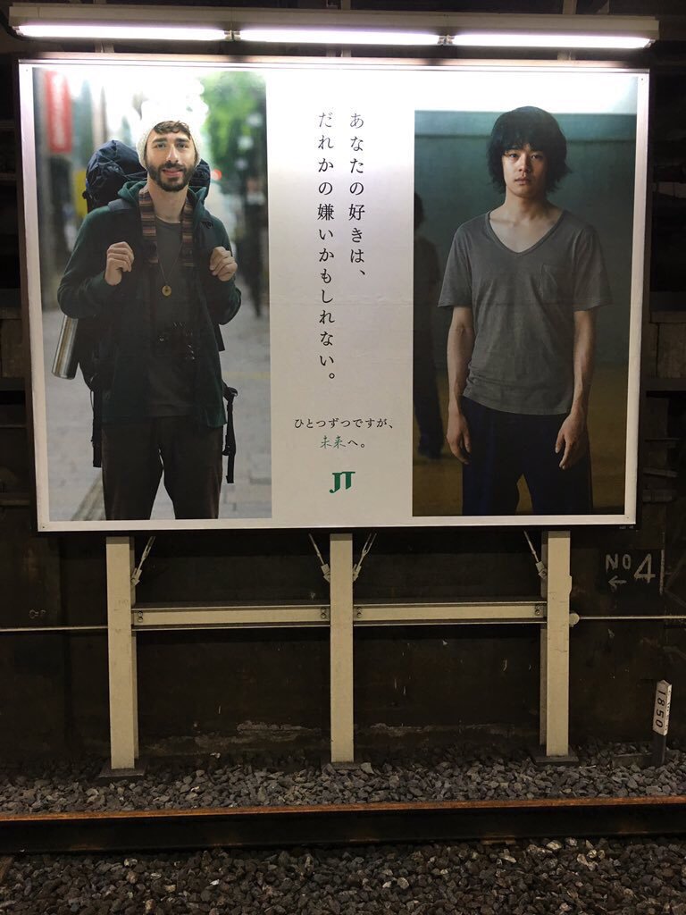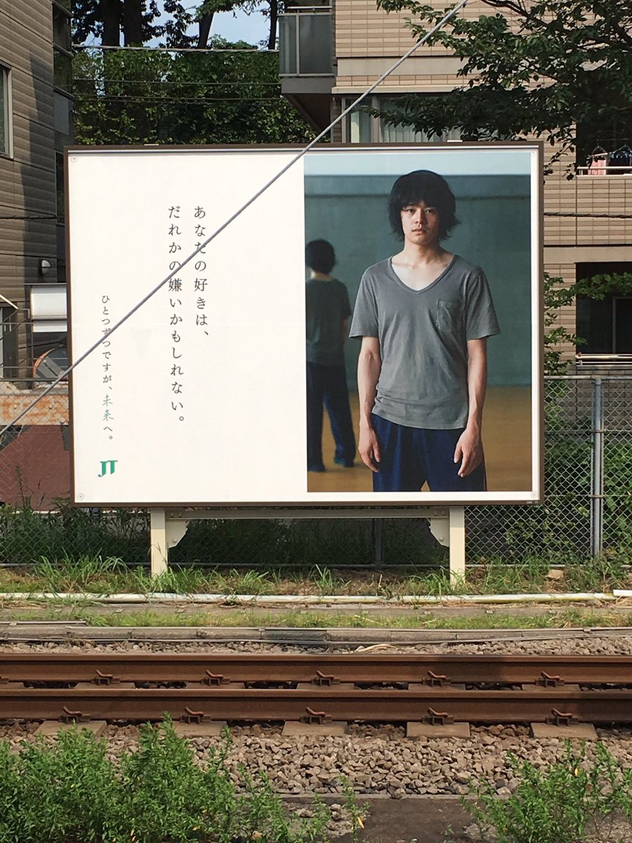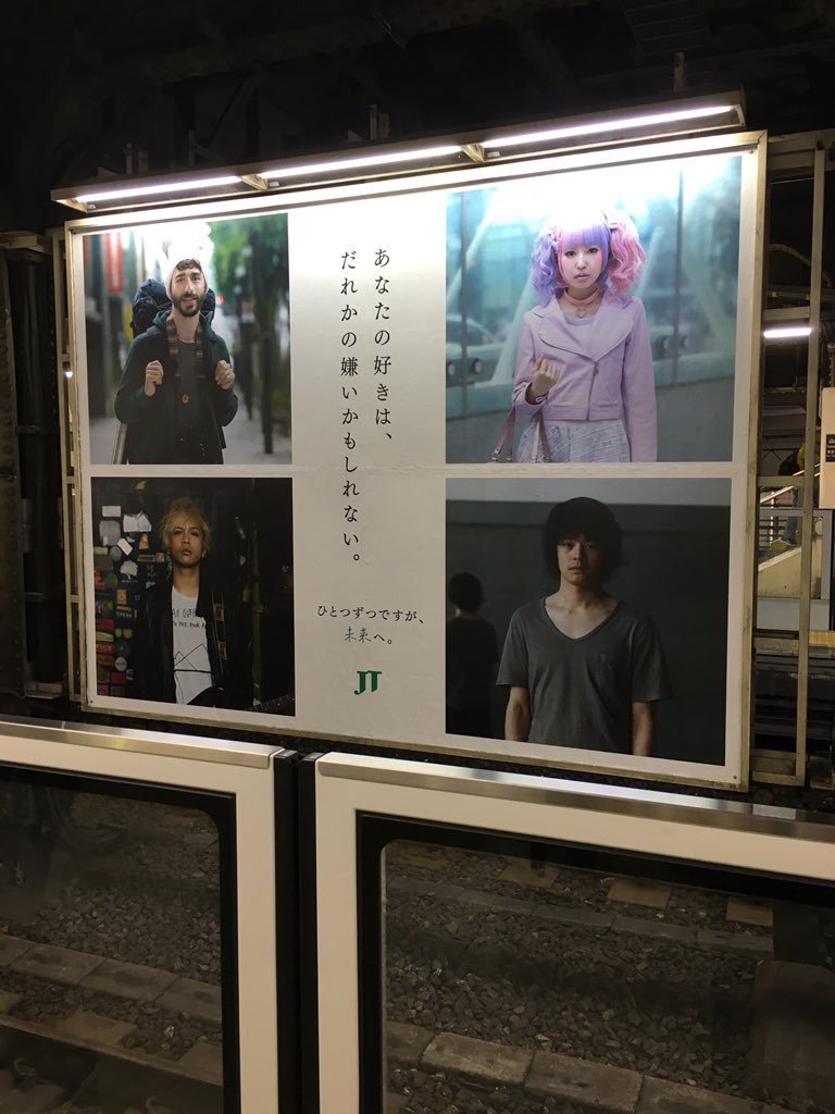 テレビCMではナレーションのみだった、JTの「ひとつずつですが、未来へ。」の交通広告が8月中旬池松さん中心のビジュアルで関東のJR線に(電車内ポスター&線路前大型ボード)掲出 ※大型ボードは山手線ほぼ全駅 テレビCMはこちら 目白駅 目黒駅 上野駅 秋葉原駅 秋葉原電車に乗ったらこの位置に